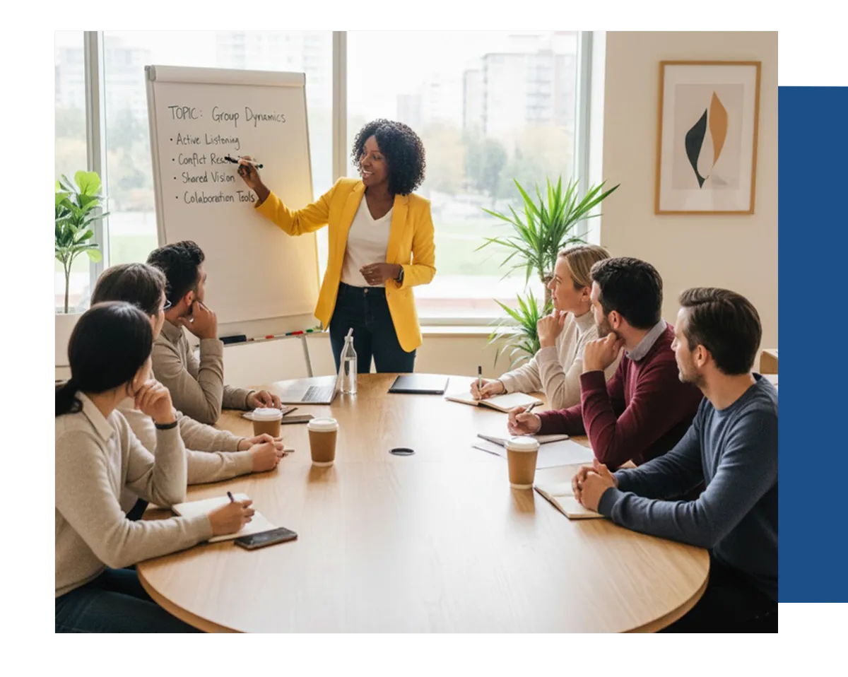 We don’t sell off-the-shelf workshops. We begin with needs analysis, then design and deliver learning through training, facilitation, executive coaching, and digital learning experiences so behavior actually changes.